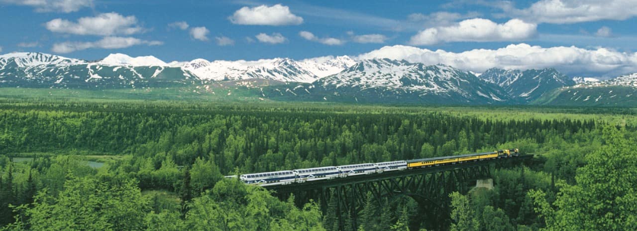 Every cruisetour features a trip on the McKinley Explorer®, our private 2-level, glass-domed railcar that travels hundreds of miles into Alaska's wild interior.