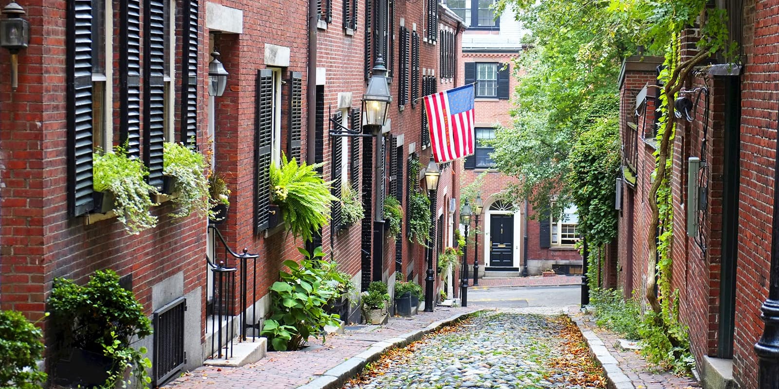 Street view of 19th-century brick homes in Boston
