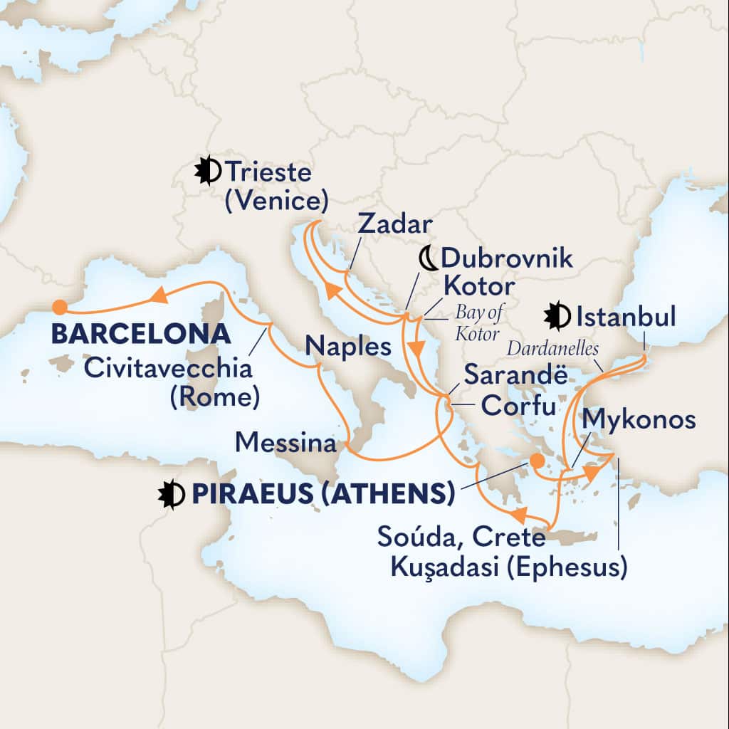 Map of itinerary 21-DAY GREEK ISLES WITH ISTANBUL, DUBROVNIK, ITALY & SPAIN