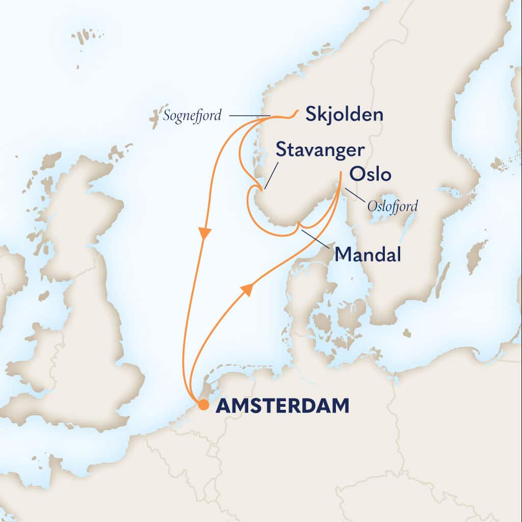 Map of itinerary 7-DAY NORWEGIAN FJORDS & SOGNEFJORD WITH HISTORY CHANNEL