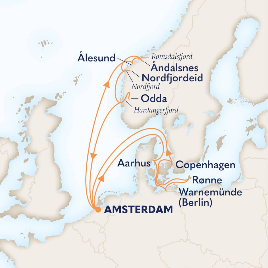 Map of itinerary 14-DAY NORWAY FJORDS & BALTIC CAPITALS WITH HISTORY CHANNEL