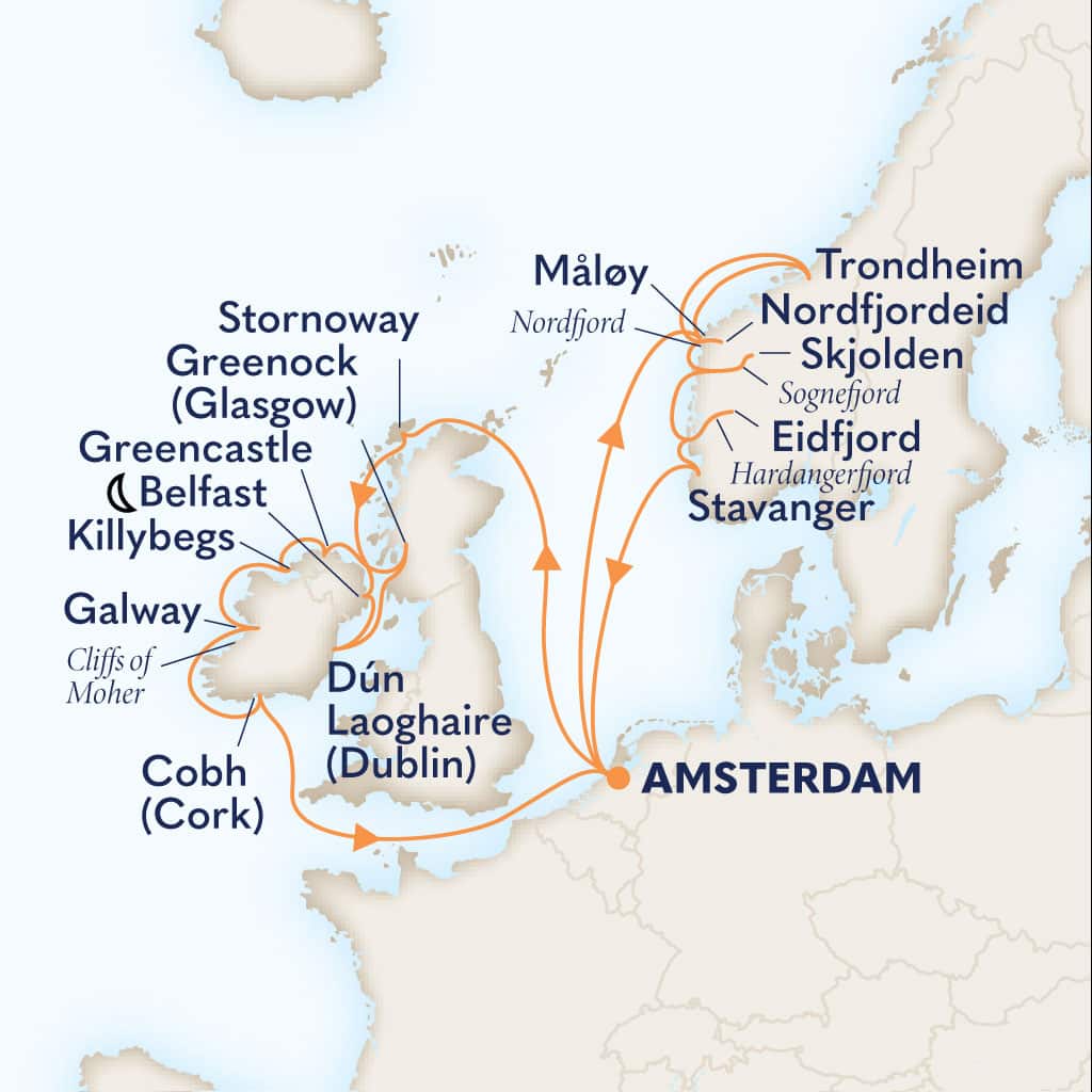 Map of itinerary 21-DAY NORWEGIAN FJORDS, IRELAND & CLIFFS OF MOHER