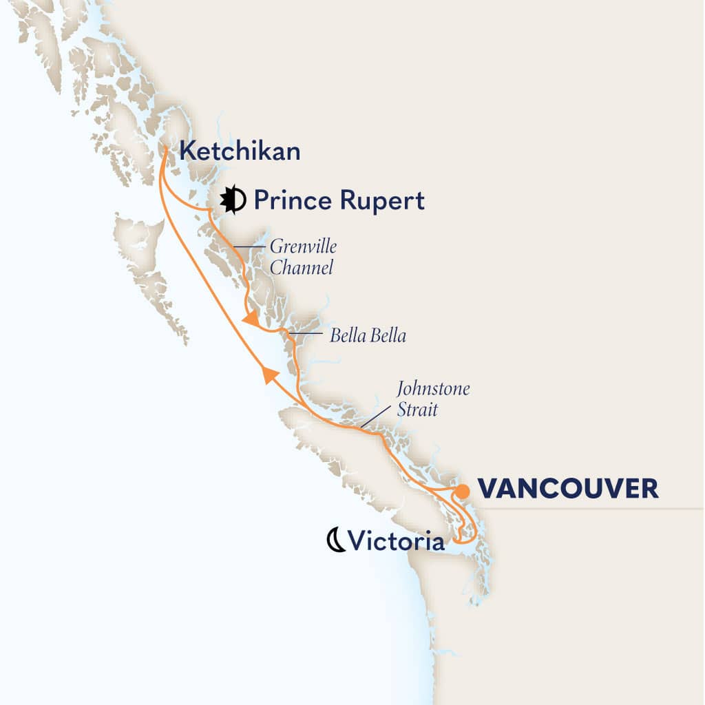 Map of itinerary 6-DAY GREAT BEAR RAINFOREST