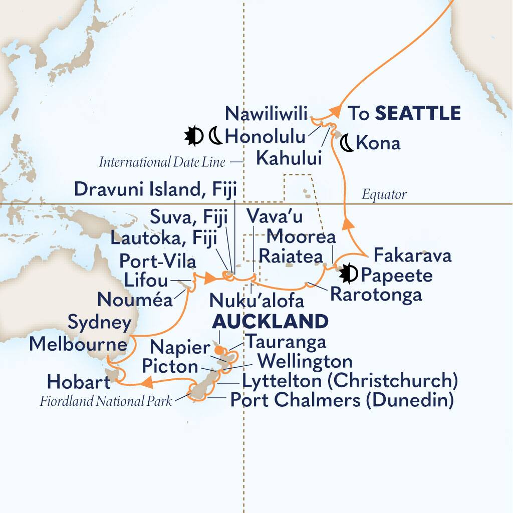 Map of itinerary 50-DAY NEW ZEALAND & SOUTH PACIFIC CROSSING COLLECTOR